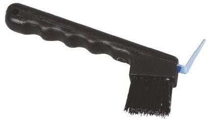 Kopystka ze szczotką pozwala na regularne czyszczenie końskich kopyt.