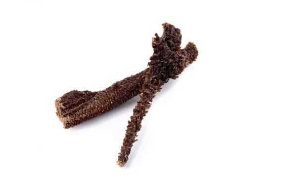 Maced Przysmak dla psa - żwacze wołowe to aromatyczna i chrupiąca przekąska zawierająca bardzo niską ilość tłuszczu, bogata zaś jest w białko oraz witaminy i substancje odżywcze. Suszone wołowe żołądki poprawiają perystaltykę jelit i ułatwiają trawienie. Fragmenty mięsa zostały pocięte na mniejsze kawałki, by zapewnić doskonałą zabawę i przyjemność żucia także mniejszym psom. Naturalne mięso nie zawiera żadnych sztucznych składników ani konserwantów, dzięki czemu bez obaw możesz podawać je swojemu psu. Specjalna technika suszenia pozwoliła na zachowanie wyjątkowego smaku oraz wszystkich wartości odżywczych. Ponadto, żując żwacze wołowe od Maced Twój pies oczyszcza swoje zęby i wzmacnia dziąsła.