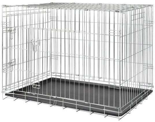 Składana klatka do transportu psa z ocynkowanego metalu. Klatka marki Trixie znakomicie nadaje się do przewożenia zwierzaka w bagażniku samochodu. Może być też wykorzystywana jako domowy kojec. Produkt marki Trixie jest bardzo praktyczny- kiedy nie jest używana klatkę można w łatwy sposób złożyć na płasko, tak by nie zajmowała dużo miejsca. Proponowana klatka posiada drzwiczki z przodu i z boku, dlatego umieszczenie w niej zwierzęcia nie sprawia kłopotu. Dodatkowo artykuł wyposażono w uchwyt do przenoszenia wykonany z tworzywa sztucznego.