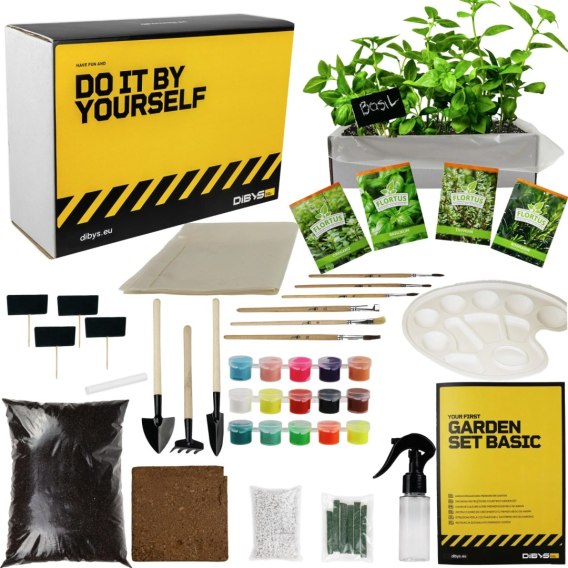 Akcesoria: 4 tabliczki oraz kreda do oznaczania roślin, 3 mini narzędzia ogrodowe (łopatka, szpadel, grabki), spryskiwacz do podlewania - wszystko, czego potrzebujesz, aby skutecznie dbać o rośliny.